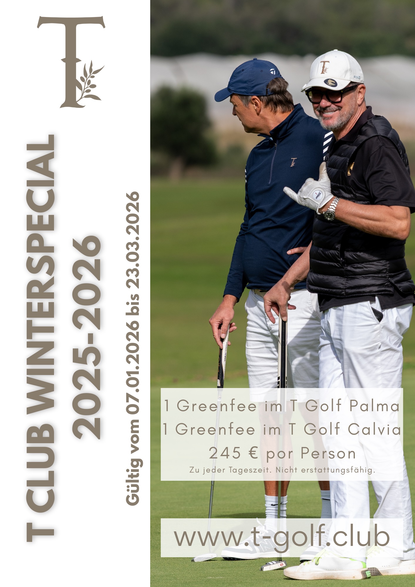 T Club Angebot im Winter (2 Greenfees) Gültig vom 07.01.2026 bis zum 23.03.2026, zu jeder Tageszeit 2 Greenfees, eins im…