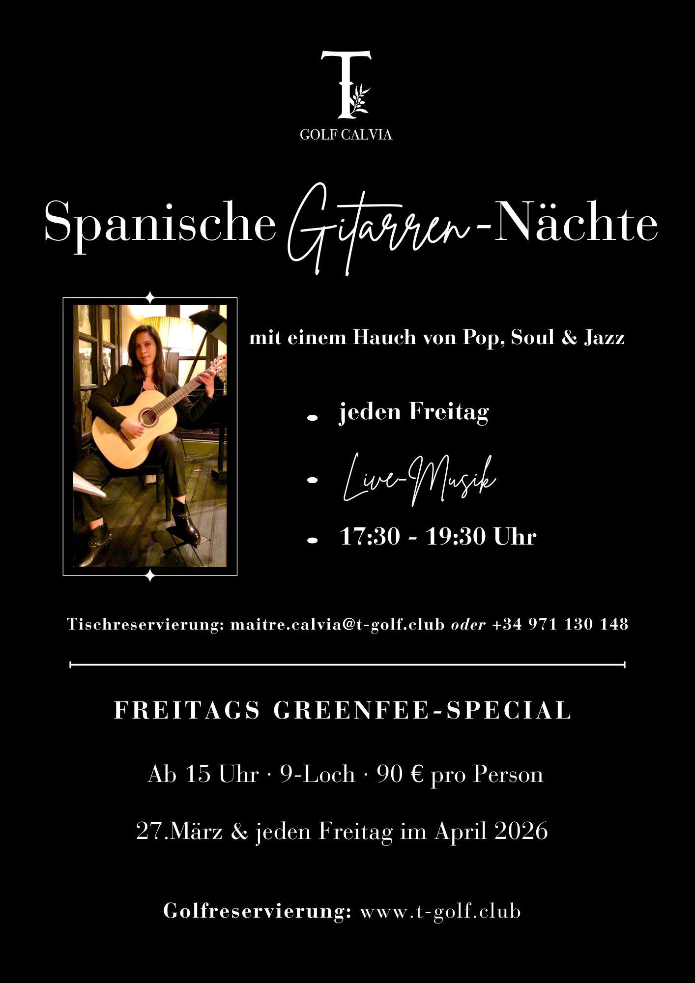 Jeden Freitag erwartet Sie im T Golf Calvia ein besonderer Abend mit Live-Musik — spanische Gitarre mit einem Hauch von…