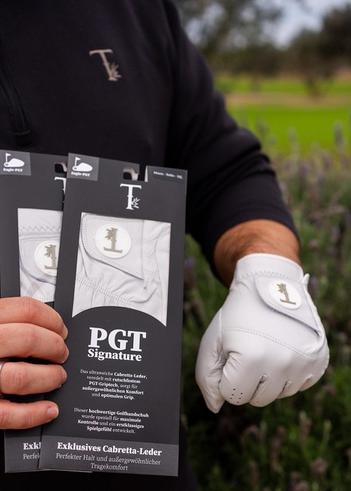 Ab sofort sind die exklusiven PGT Signature Golfhandschuhe in unseren Pro Shops erhältlich. Hergestellt aus hochwertigem Cabretta-Leder bieten diese Handschuhe optimalen Halt und außergewöhnlichen Tragekomfort für Ihr Spiel.