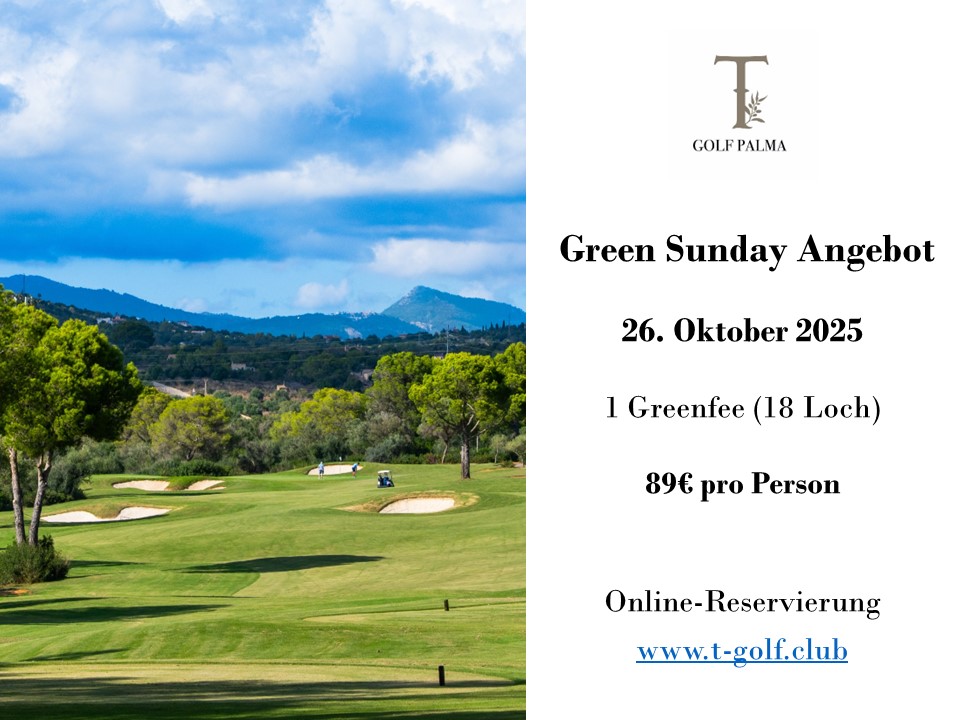 Verpassen Sie nicht die Gelegenheit, Ihren Tag mit dem Green Sunday bei T Golf Palma perfekt zu gestalten.