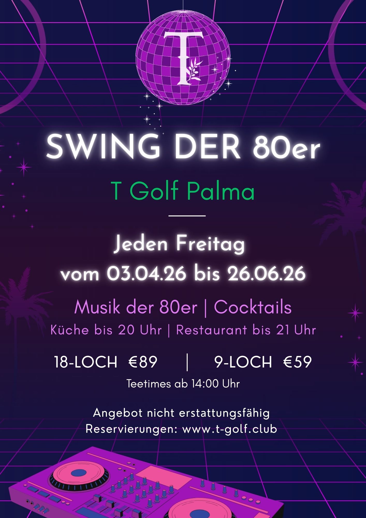 Reservierungen per E-Mail: calvia@t-golf.club oder palma@t-golf.club