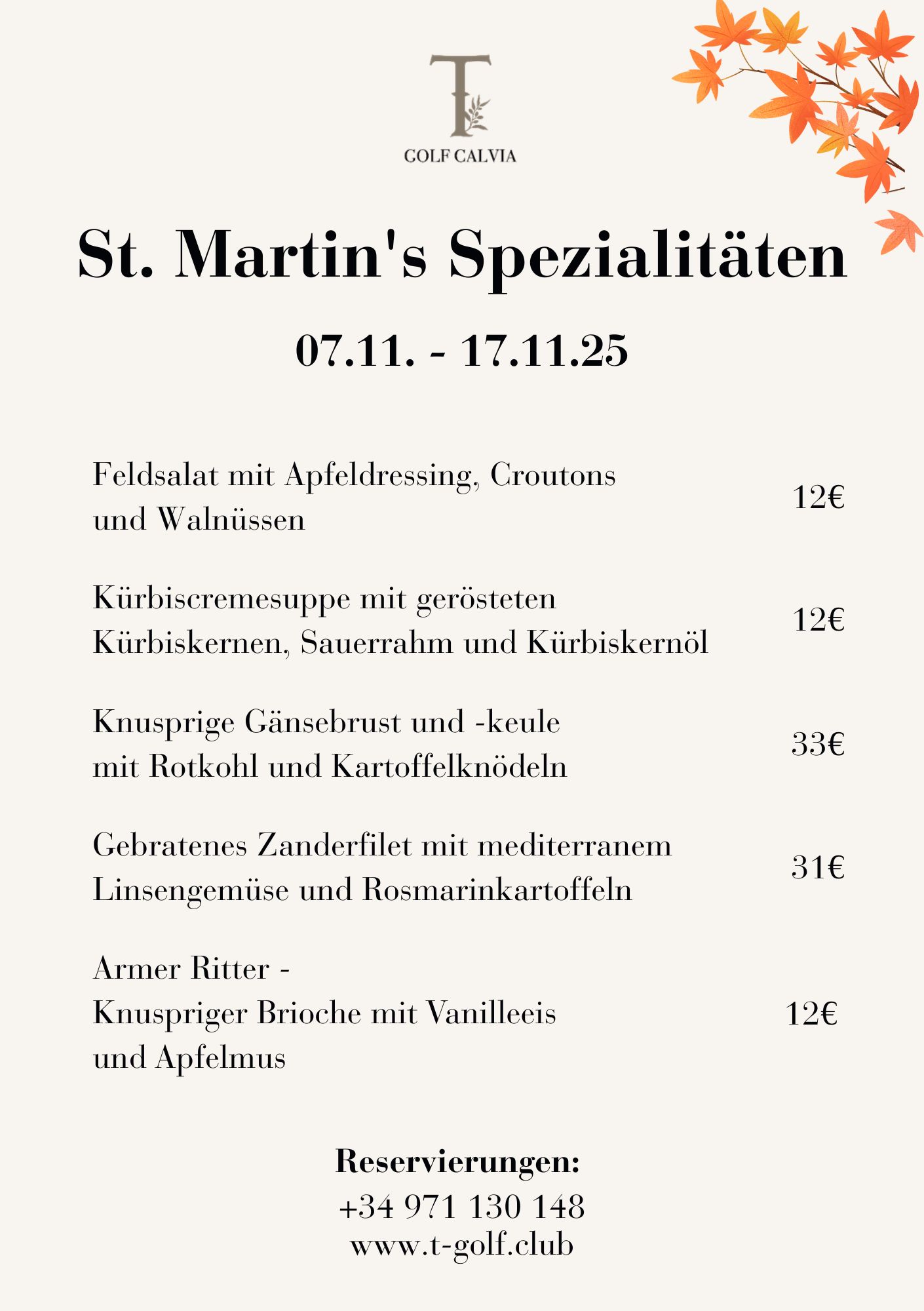 Erleben Sie die kulinarischen Traditionen von San Martin im T-elicious Calvia! Vom 7. bis 17. November verwöhnt Sie unser Küchenteam mit einem besonderen Themenmenü, das dieses beliebte Fest zelebriert.