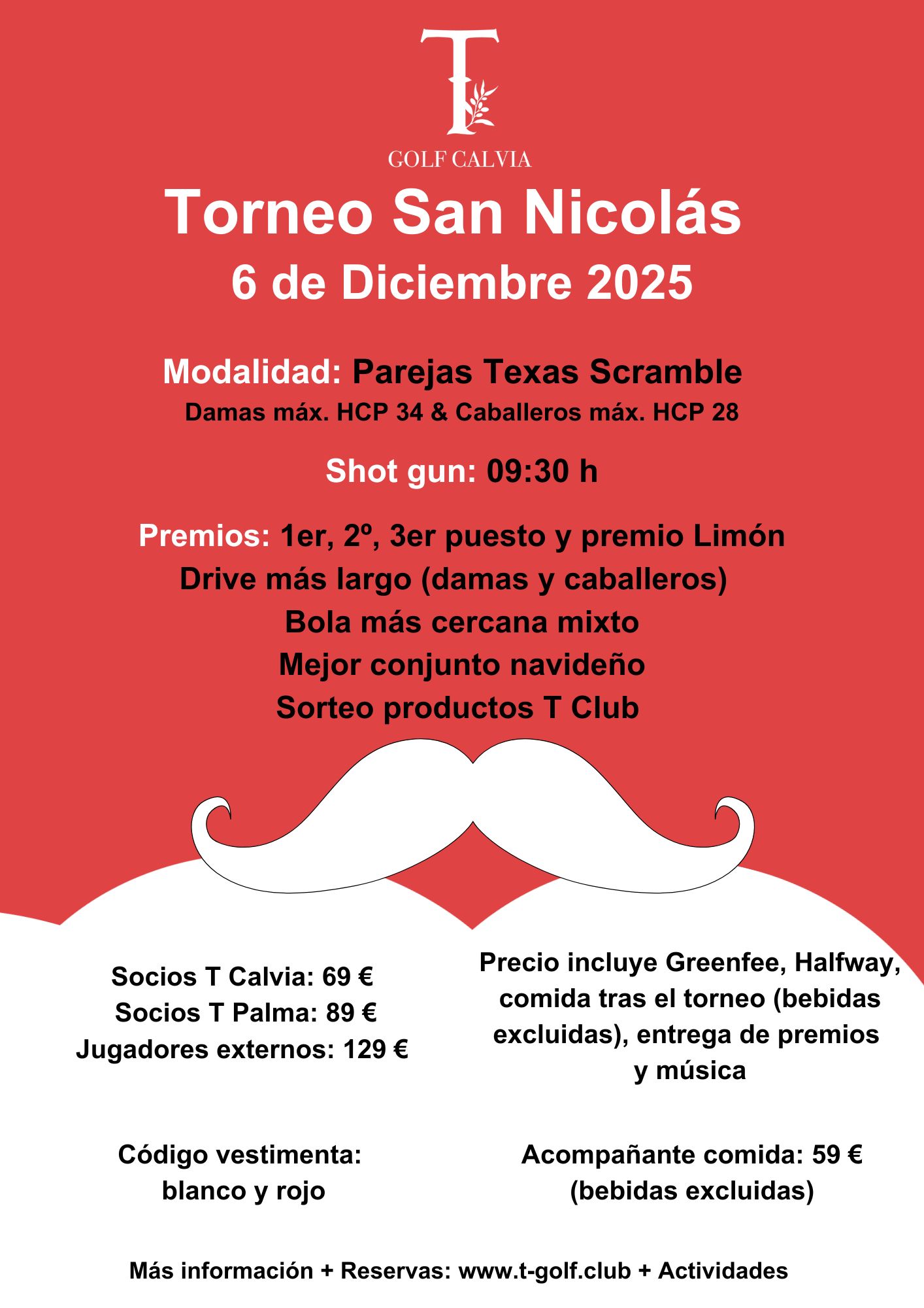 Participe el 6 de diciembre de 2025 a nuestro tradicional Torneo de San Nicolás en T Golf Calvia. Comiencen la temporada de Adviento con nosotros!
