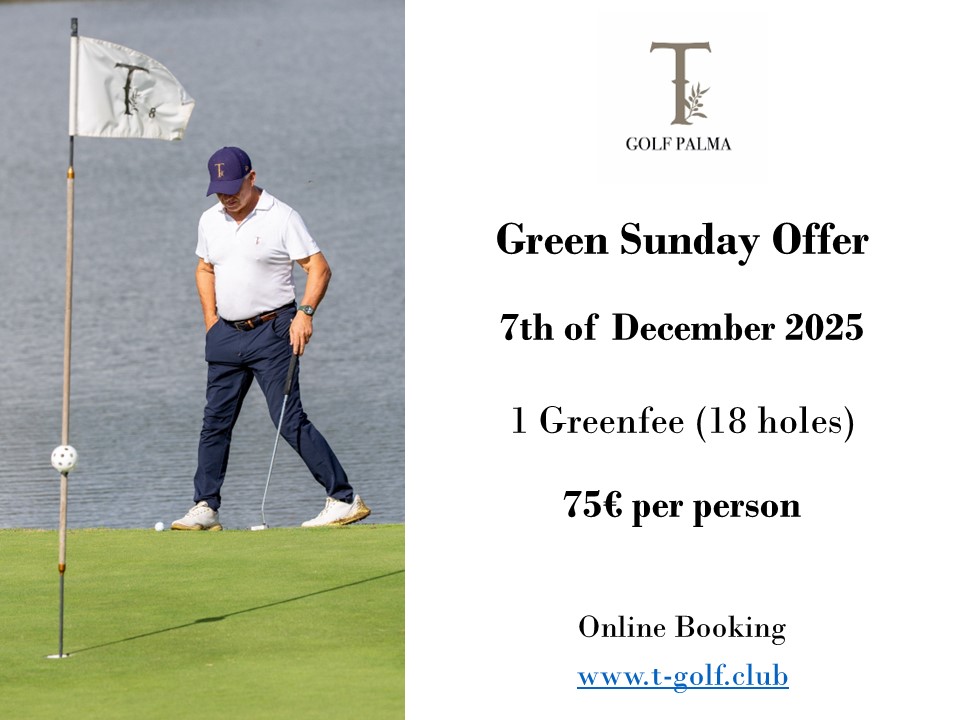 The seventh day takes first place with our Green Sunday offer. What better way to celebrate Sunday than with a round of golf.