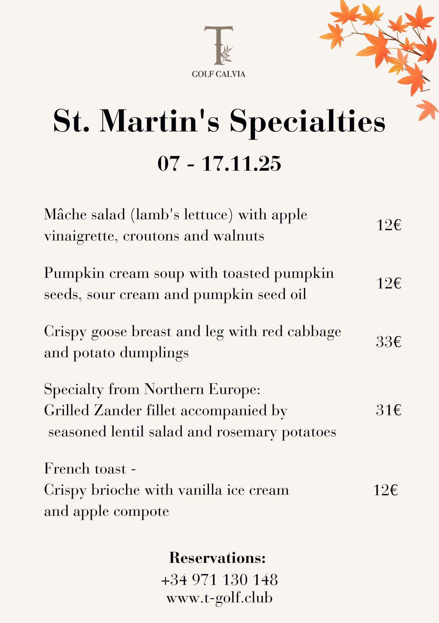 Experience the culinary traditions of San Martin at T-elicious Calvia! From 7th to 17th of November, our kitchen team will delight you with a special themed menu celebrating this beloved festival.